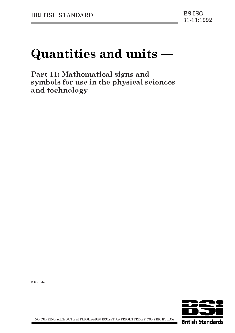 Quantities and units Mathematical signs symbols to be used in the natural sciences technology