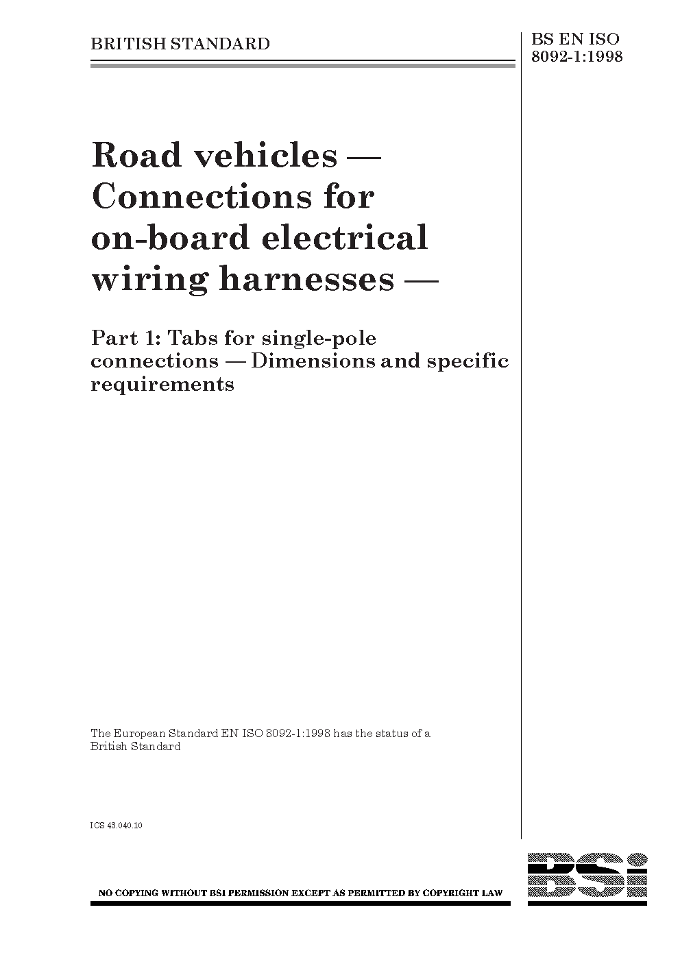Electrical connections;Electric lugs;Electric wiring systems;Design;Single;Road vehicles;Vehicle components;Marking;Electrical components;Road vehicle components;Harnesses;Cable junctions;Dimensions;Electrical installations;Electric connectors;Designations