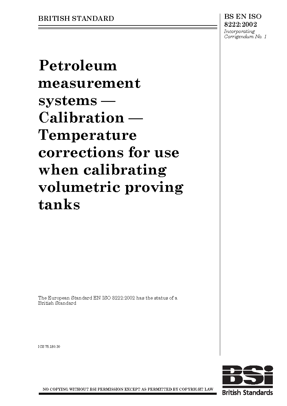 Petroleum measurement systems. Calibration. Temperature corrections for use when calibrating volumetric proving tanks