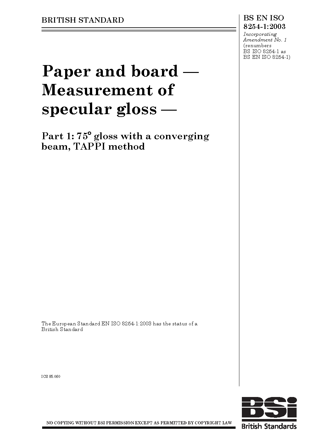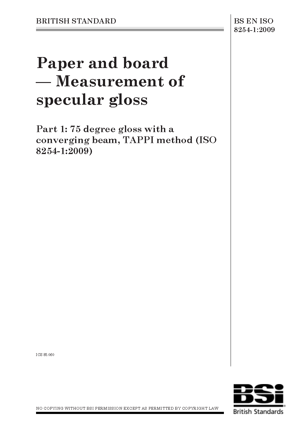 BS EN ISO 8254-1:2009