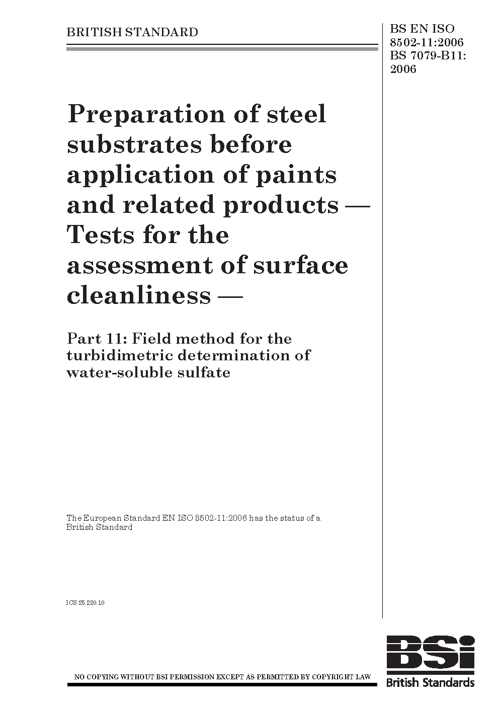 Preparation of steel substrates before application paints and related products. Tests for the assessment surface cleanliness Field method turbidimetric determination water-soluble sulfate