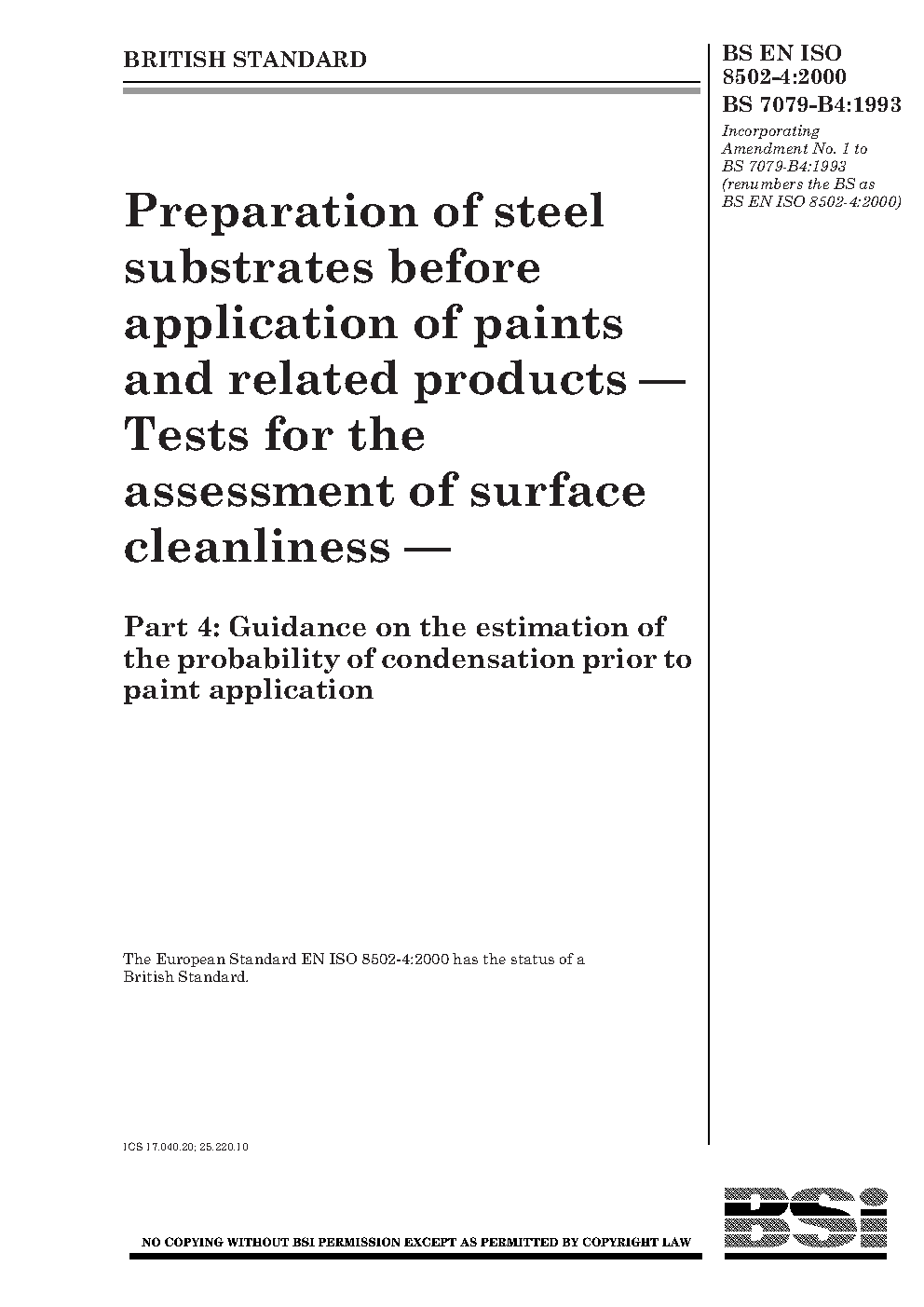 Preparation of steel substrates before application paints and related products. Tests for the assessment surface cleanliness Guidance on estimation probability condensation prior to paint
