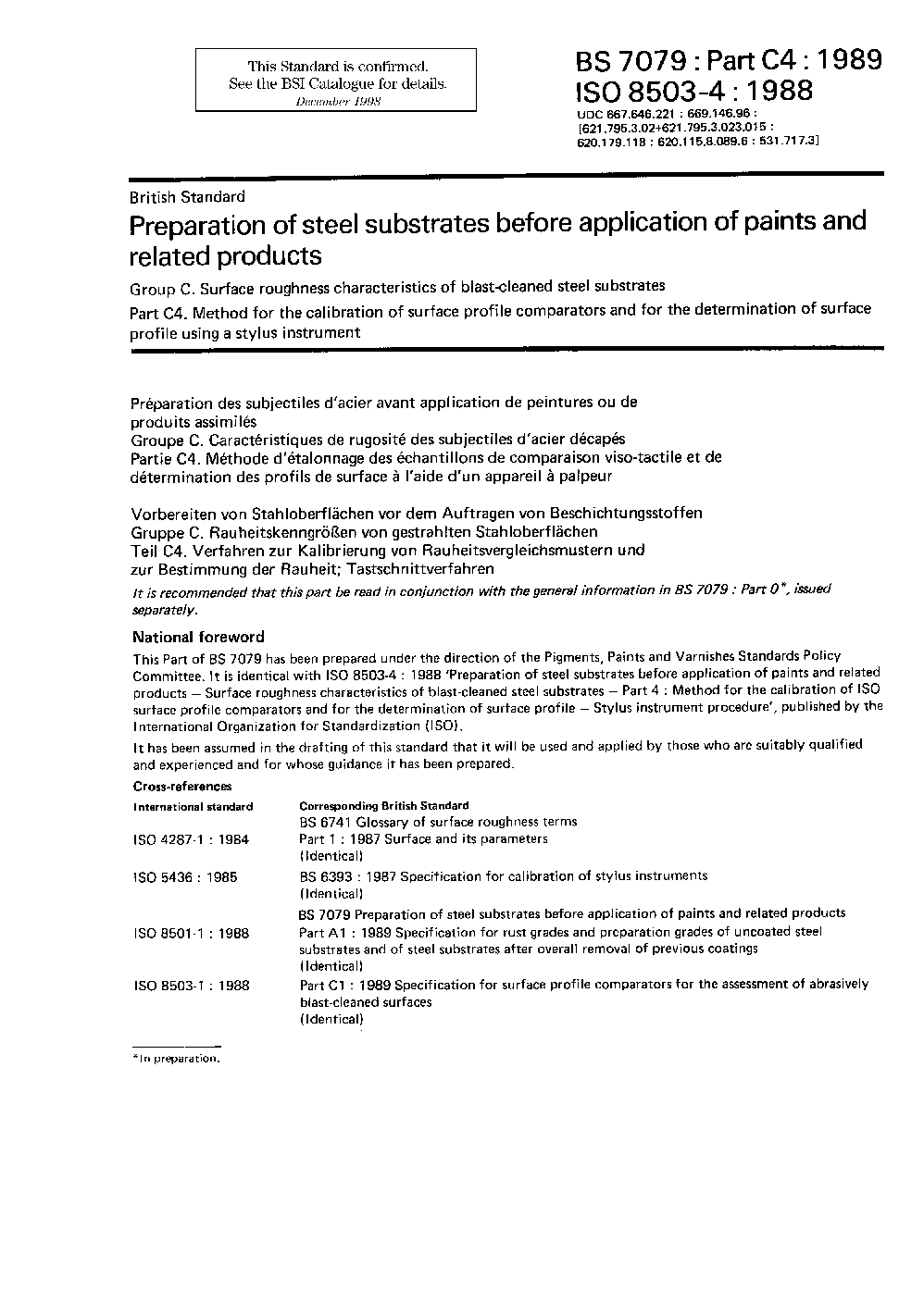 Profile measurement;Painting;Surface-roughness measurement;Mechanical cleaning;Steels;Replica techniques;Calibration;Surfaces;Cleaning;Profilometers;Blast-cleaning;Roughness (surface);Test equipment;Surface properties;Surface treatment;Comparators;Abrasive processes