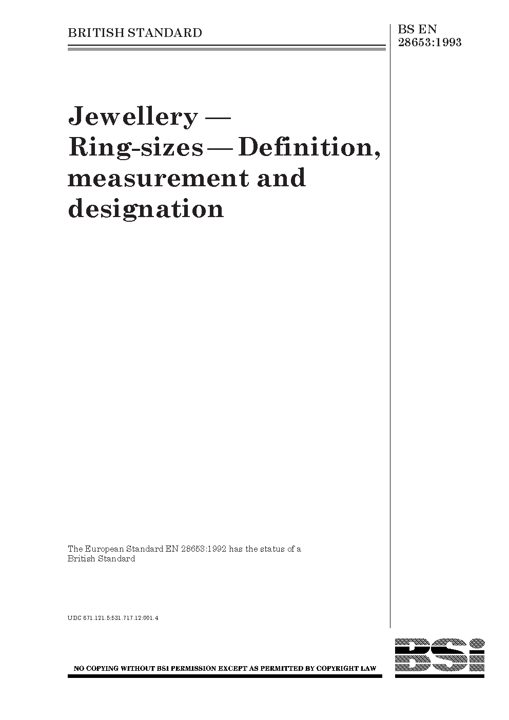 Jewellery — Ring-sizes — Definition, measurement and designation