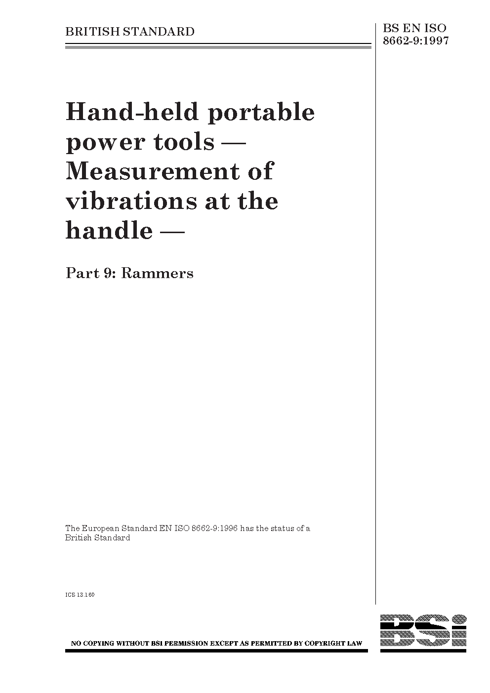 Hand-held portable power tools. Measurement of vibrations at the handle Rammers