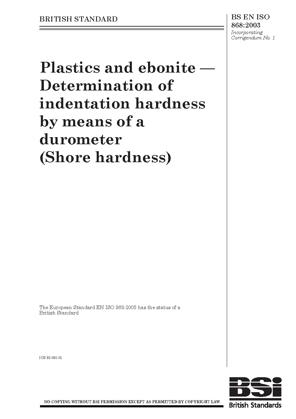 Plastics and ebonite. Determination of indentation hardness by means of a durometer (Shore hardness)