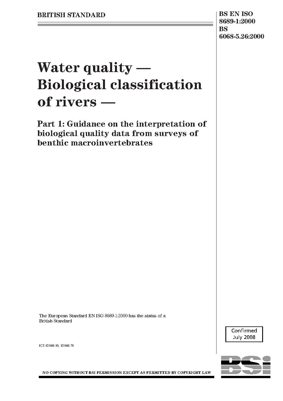 Water quality. Biological classification of rivers Guidance on the interpretation biological quality data from surveys benthic macroinvertebrates