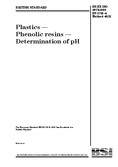 Polymers;Phenolic resins;Thermosetting polymers;Plastics;Physico-chemical methods;Specimen preparation;Liquids;pH measurement;Chemical analysis and testing