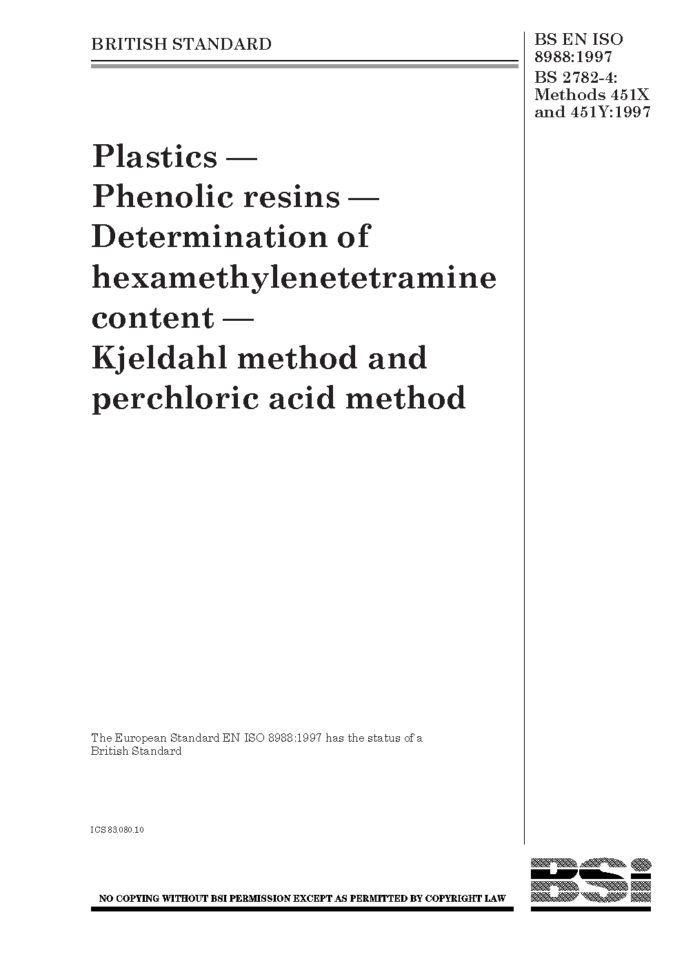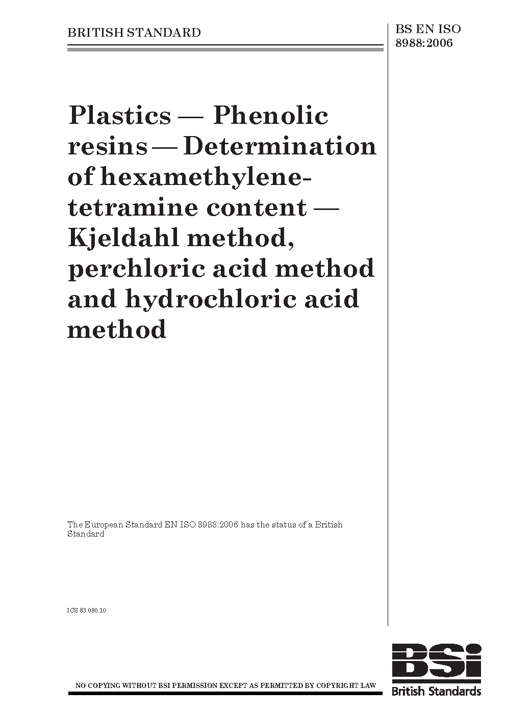 Plastics. Phenolic resins. Determination of hexamethylenetetramine content. Kjeldahl method and perchloric acid method