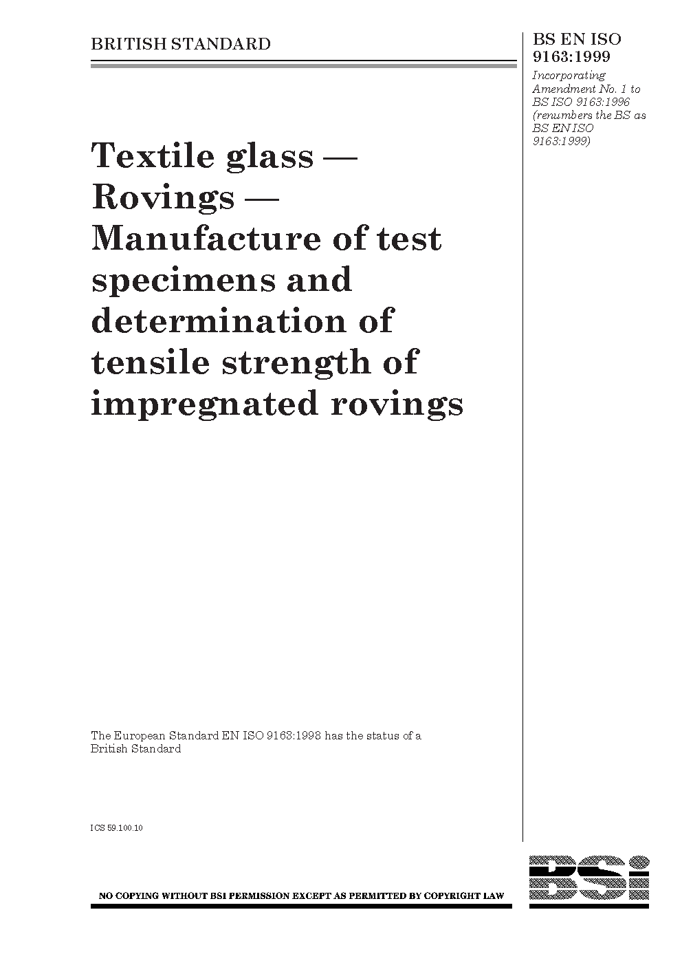Sampling methods;Test equipment;Fibre testing (textiles);Textile testing;Test specimens;Impregnated materials;Roving (fibre);Dimensions;Textile fibres;Testing conditions;Textile glass;Tensile testing;Specimen preparation