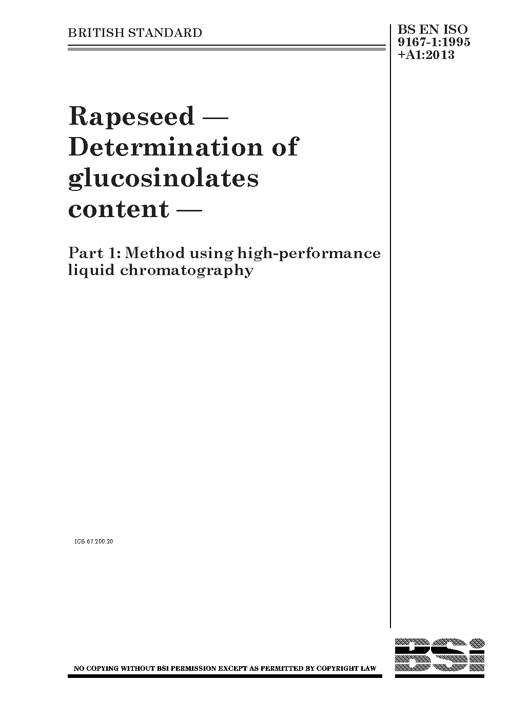 Rapeseed. Determination of glucosinolates content Method using high-performance liquid chromatography