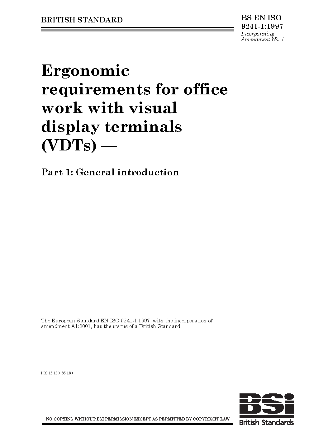 Ergonomic requirements for office work with visual display terminals (VDTs) General introduction
