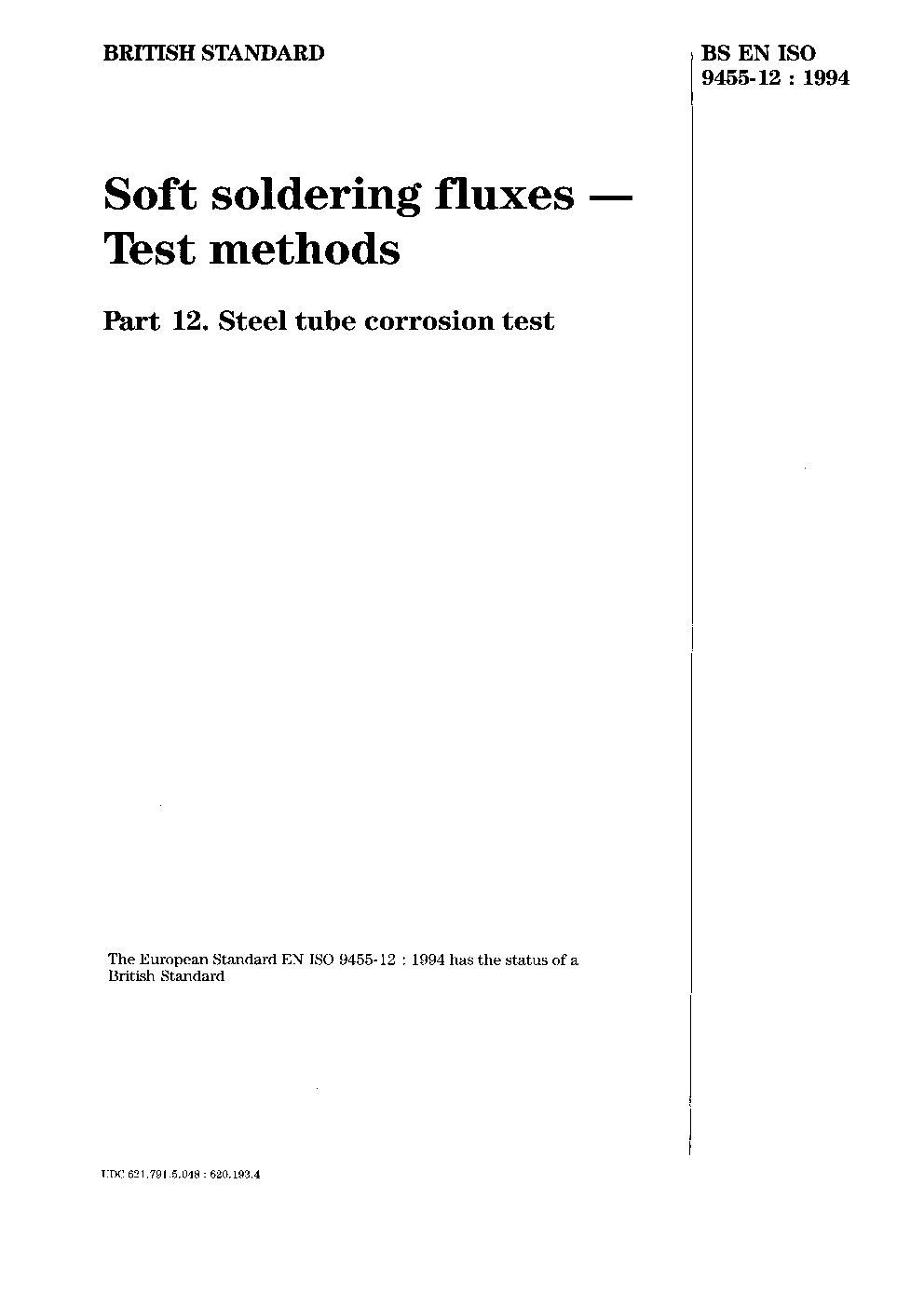 Soft soldering fluxes. Test methods Steel tube corrosion test