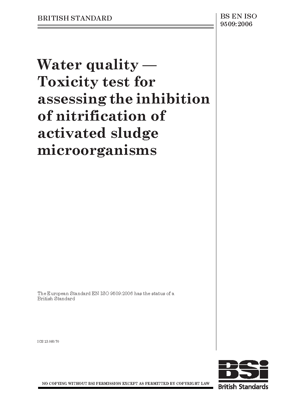 Water quality. Toxicity test for assessing the inhibition of nitrification of activated sludge microorganisms