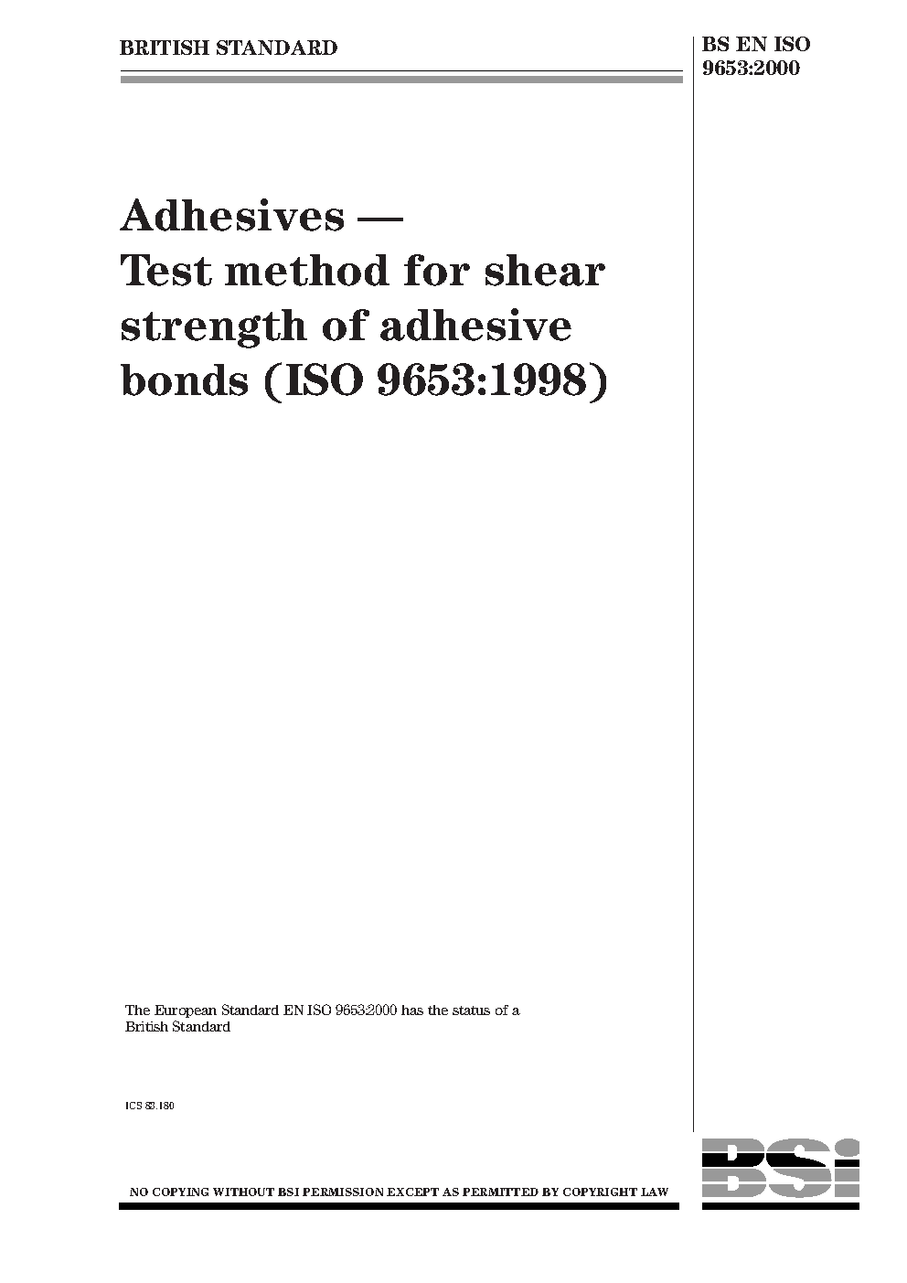 Adhesion tests;Adhesives;Impact testing;Specimen preparation;Shear testing;Testing conditions;Adhesive-bonded joints