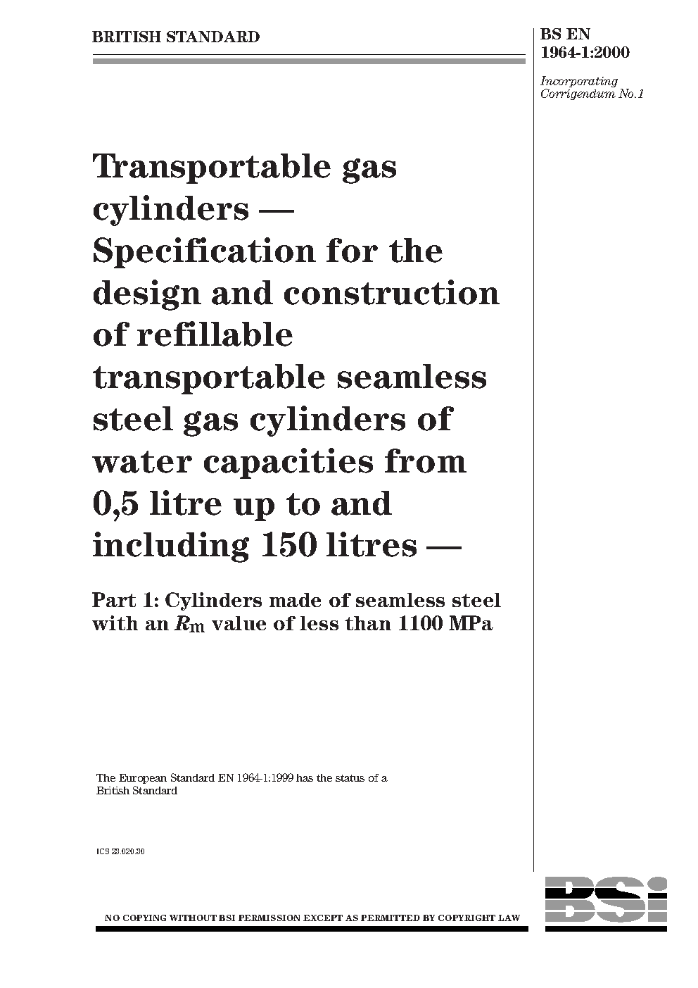 Gas cylinders. Refillable seamless steel gas Design, construction and testing Quenched tempered cylinders with tensile strength less than 1100 MPa