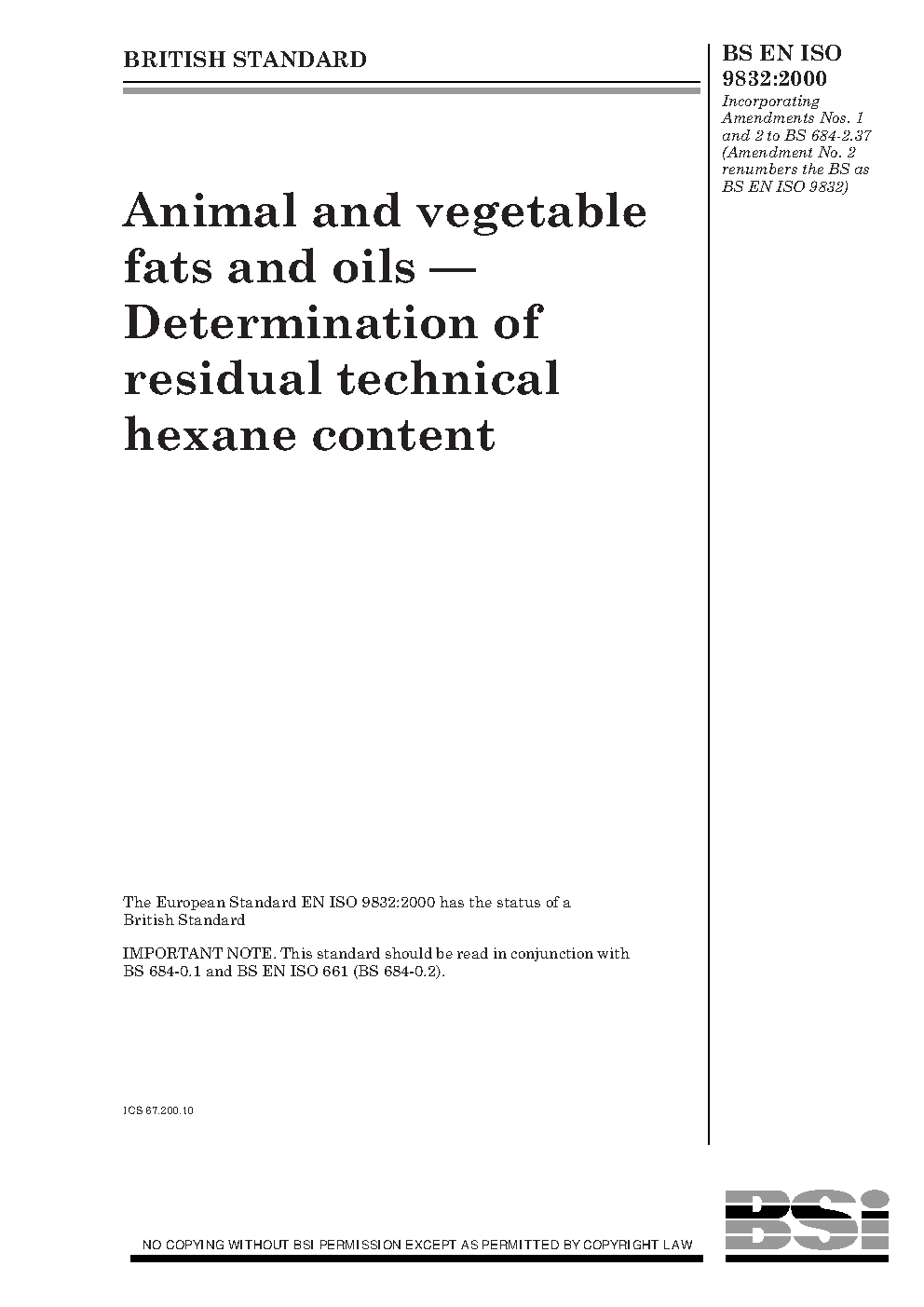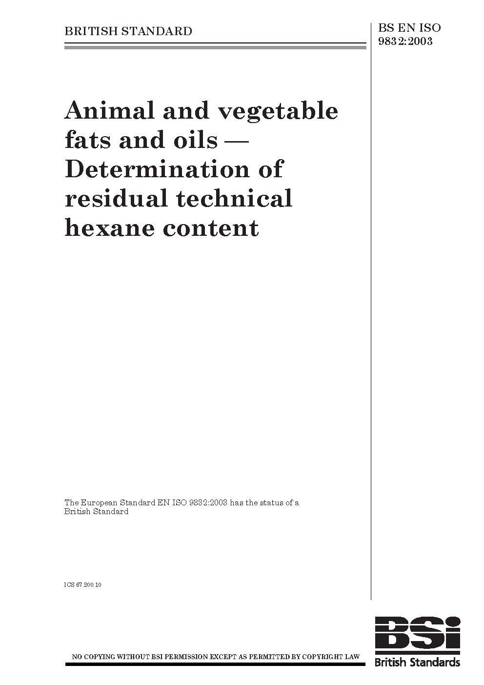 Animal and vegetable fats and oils. Determination of residual technical hexane content