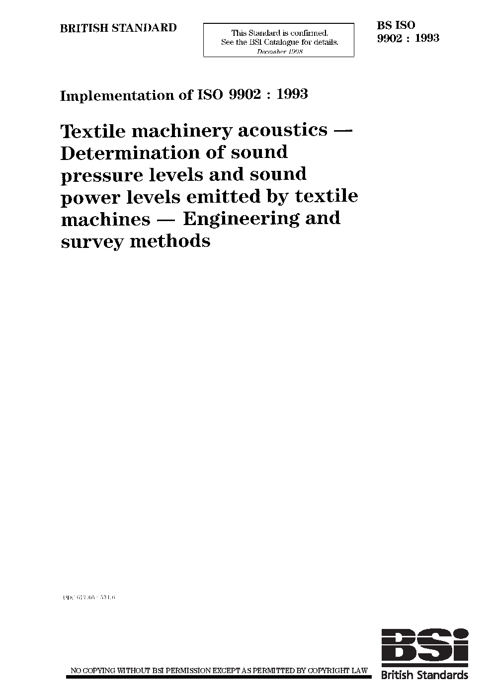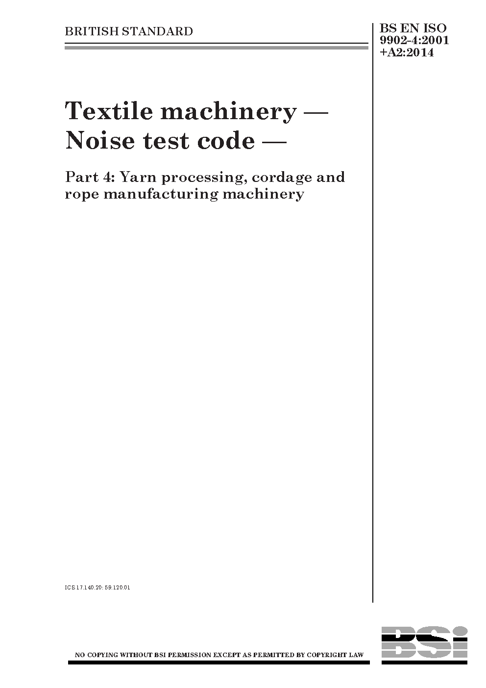Textile machinery. Noise test code Yarn processing, cordage and rope manufacturing machinery