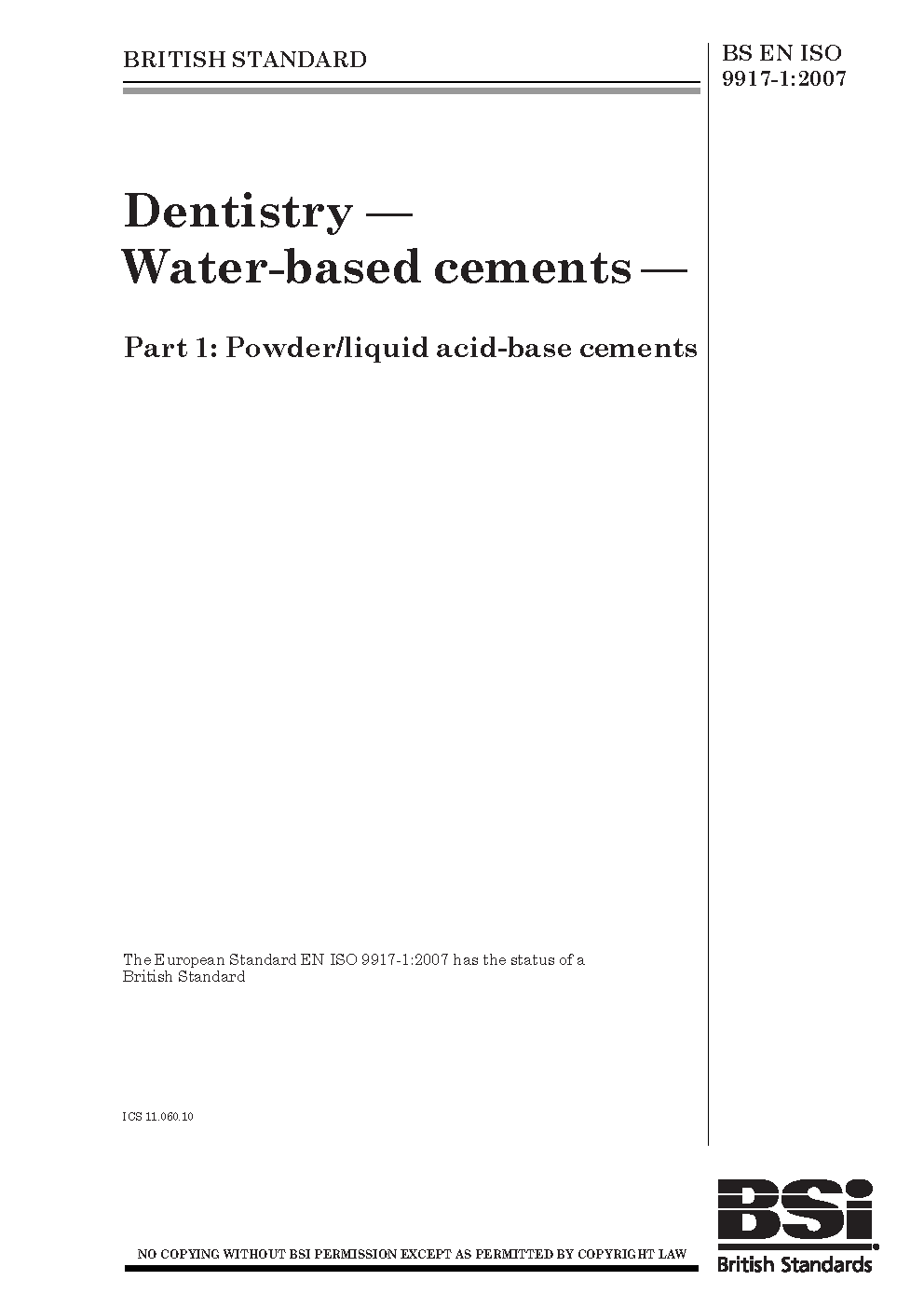 Particulate materials;Dental cements;Acid-resistance tests;Zinc inorganic compounds;Compression testing;Arsenic;Compressive strength;Dentistry;Setting;Liquids;Time;Lead;Optical measurement;Films (states of matter);Optical properties of materials;Thickness measurement;Zinc organic compounds;Classification systems;Dental materials