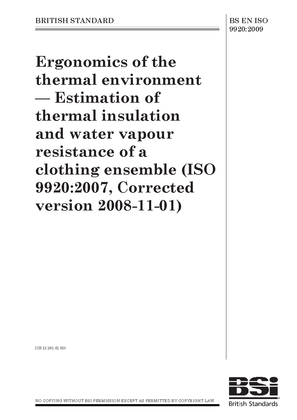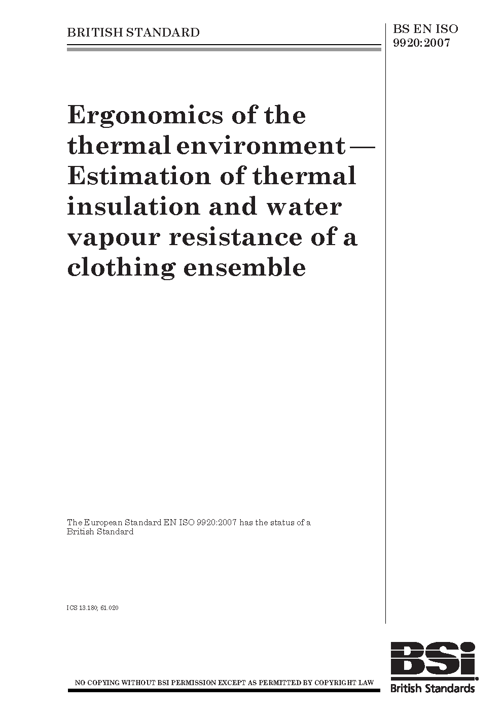 Ergonomics of the thermal environment. Estimation of thermal insulation and water vapour resistance of a clothing ensemble