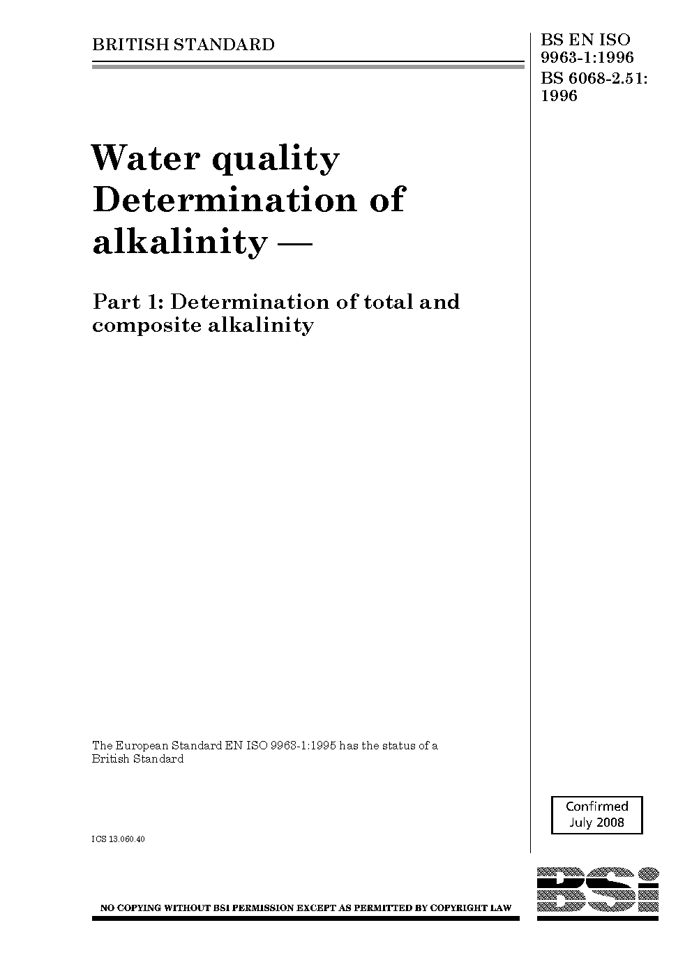 Alkalinity;Testing conditions;Sampling methods;Quality;Chemical analysis and testing;Water;Potentiometric methods;Water testing;Interferences (chemical);Volumetric analysis
