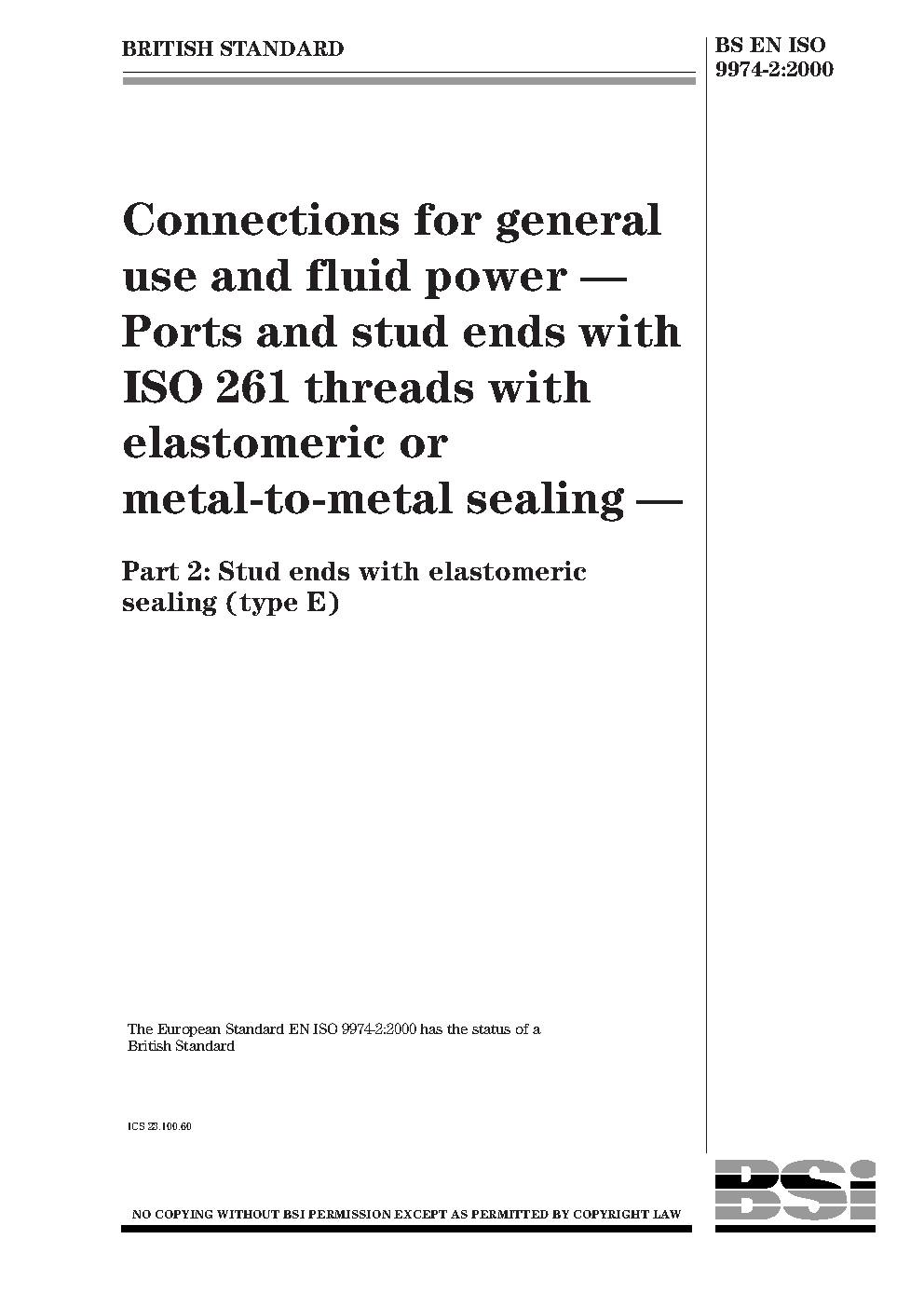 Connections for general use and fluid power. Ports stud ends with ISO 261 threads elastomeric or metal-to-metal sealing Stud (type E)