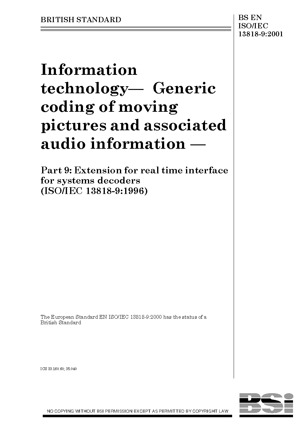 Information technology. Generic coding of moving pictures and associated audio information Extension for real time interface systems decoders