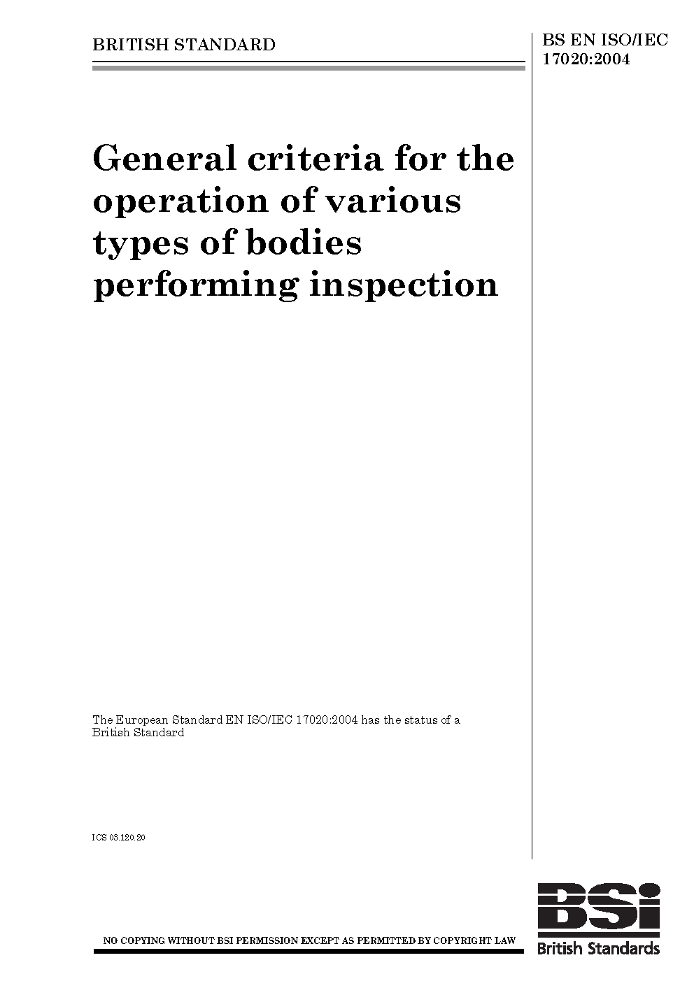 Conformity assessment. Requirements for the operation of various types of bodies performing inspection