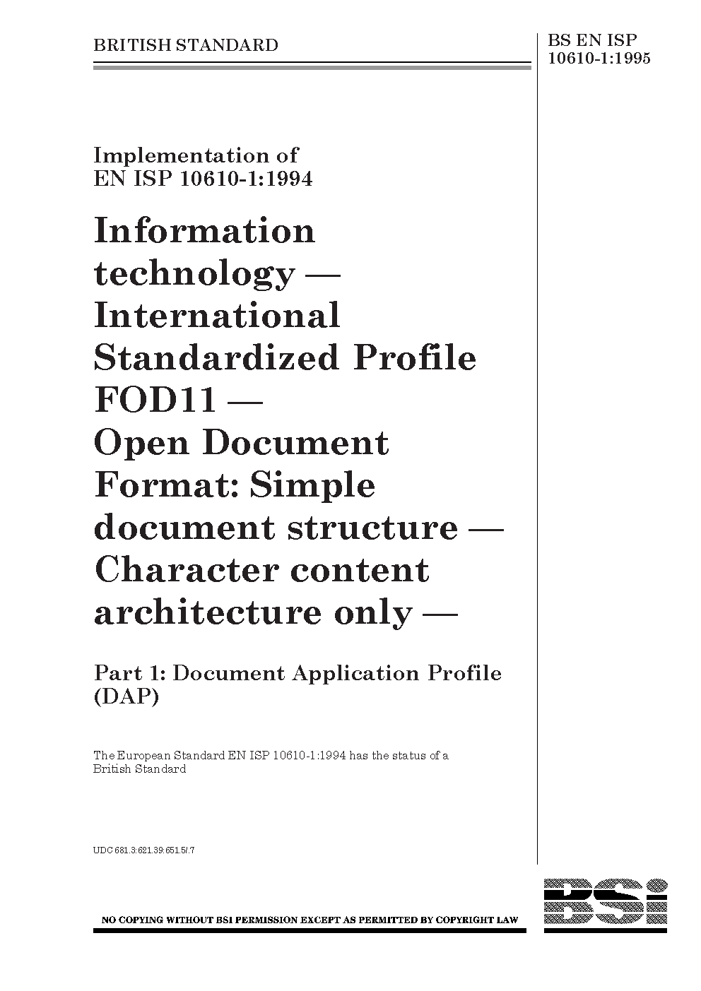 BS EN ISP 10610-1:1995