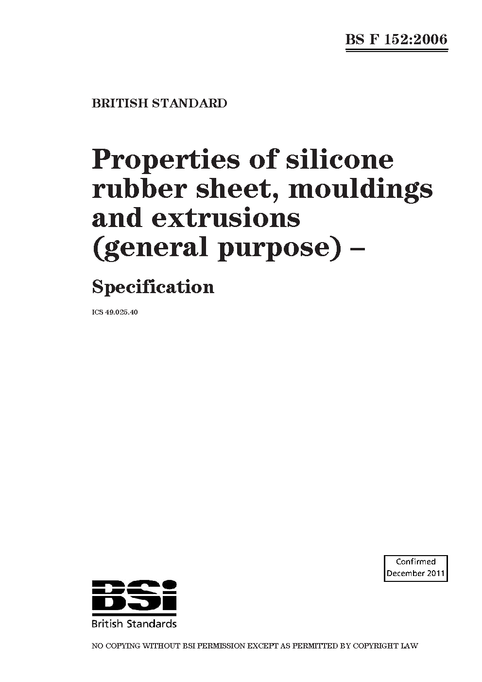 Properties of silicone rubber sheet, mouldings and extrusions (general purpose). Specification