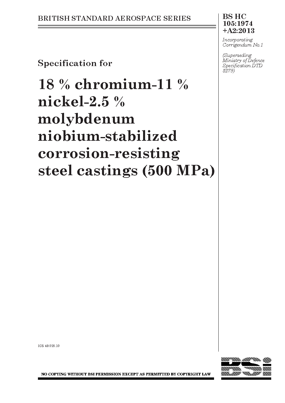 Mechanical properties of materials;Cast steels;Air transport engineering;Stainless steels;Nickel steels;High-alloy steels;Castings;Niobium steels;Chromium steels;Corrosion-resistant steels;Chemical composition;Steels;Molybdenum steels