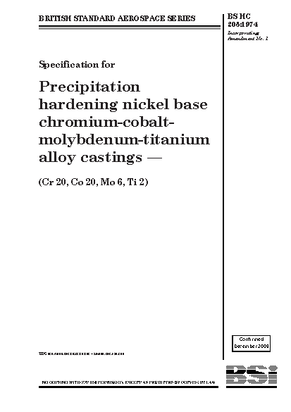 Specification for precipitation hardening nickel base chromium-cobalt-molybdenum-titanium alloy castings (Cr 20, Co 20, Mo 6, Ti 2)