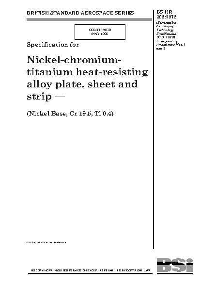 Specification for nickel-chromium-titanium heat-resisting alloy plate, sheet and strip (nickel base, Cr 19.5, Ti 0.4)