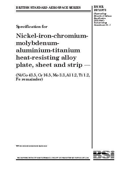 Specification for nickel-iron-chromium-molybdenum-aluminium-titanium heat-resisting alloy plate, sheet and strip (Ni/Co 43.5, Cr 16.5, Mo 3.3, Al 1.2, Ti 1.2, Fe remainder)