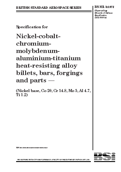 Specification for nickel-cobalt-chromium-molybdenum-aluminium-titanium heat-resisting alloy billets, bars, forgings and parts (nickel base, Co 20, Cr 14.8, Mo 5, Al 4.7, Ti 1.2)