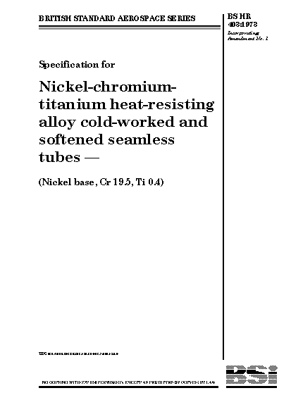 Specification for nickel-chromium-titanium heat-resisting alloy cold-worked and softened seamless tubes (nickel base, Cr 19.5, Ti 0.4)