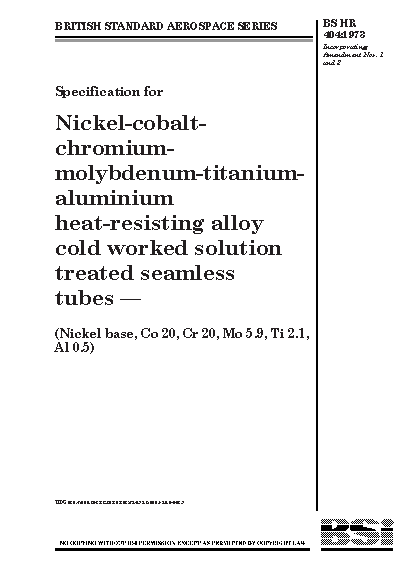 Specification for nickel-cobalt-chromium-molybdenum-titanium-aluminium heat-resisting alloy cold worked solution treated seamless tubes (nickel base, Co 20, Cr 20, Mo 5.9, Ti 2.1, Al 0.5)