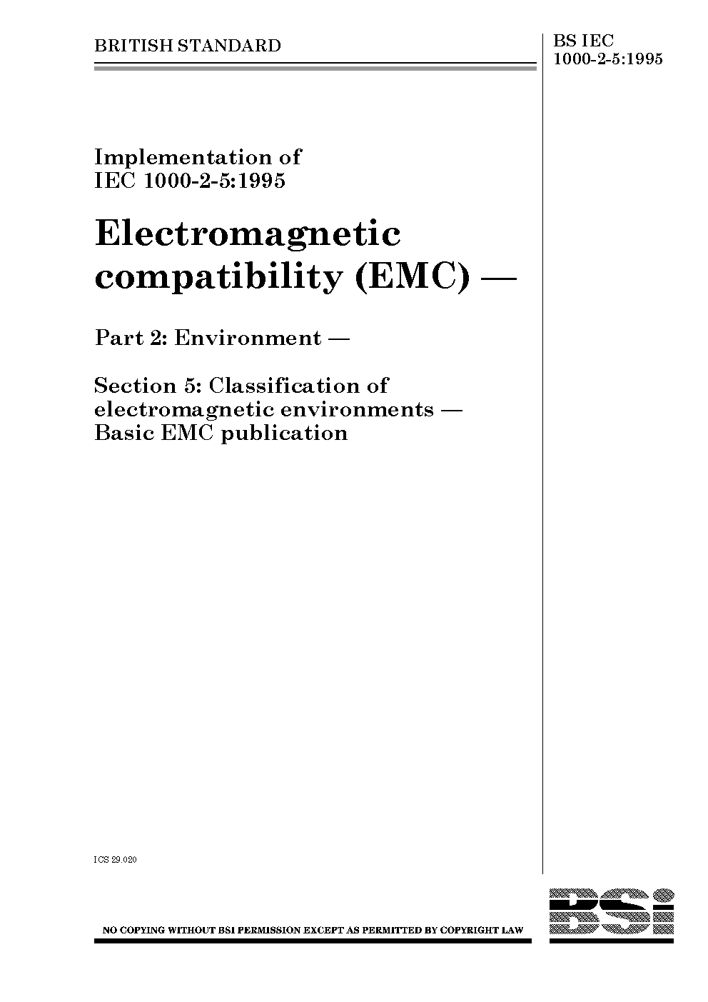 Electromagnetic compatibility (EMC). Environment Classification of electromagnetic environments. Basic EMC publication