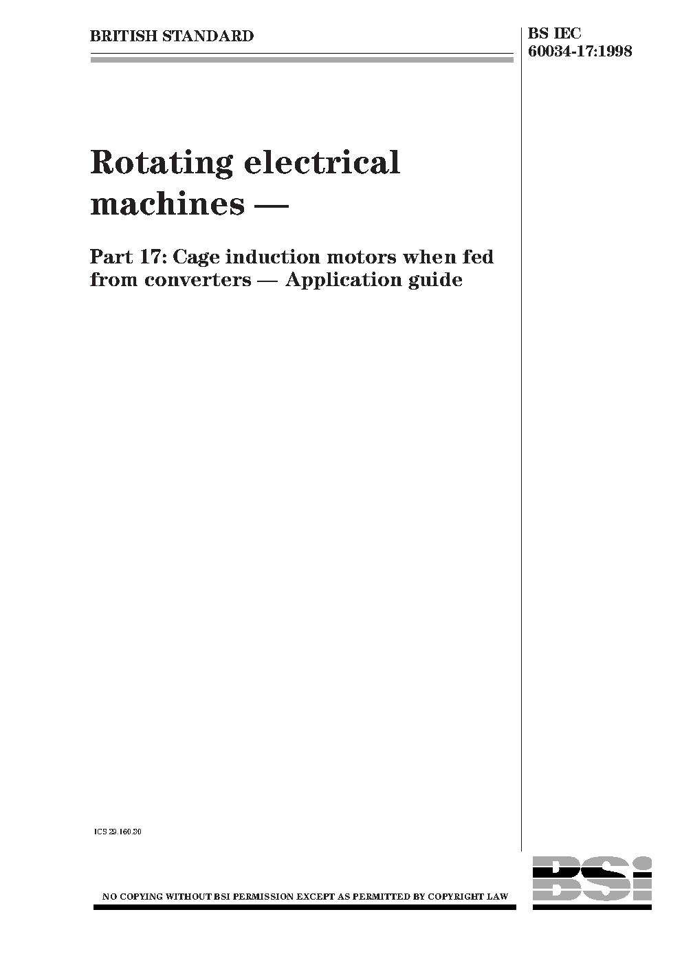 Rotating electrical machines Cage induction motors when fed from converters. Application guide