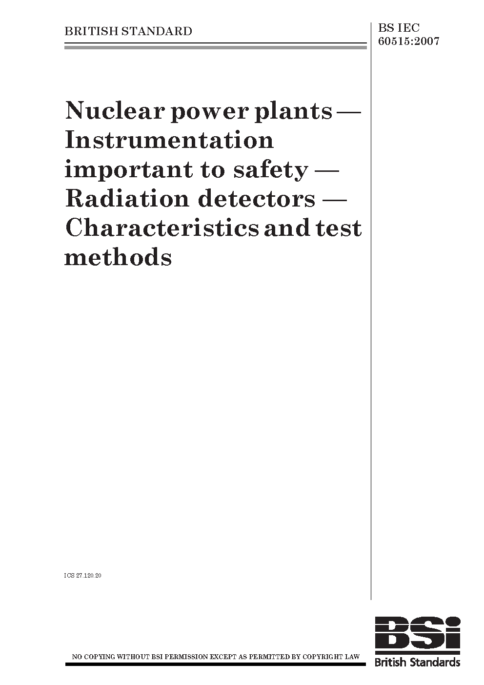 Nuclear power plants. Instrumentation important to safety. Radiation detectors. Characteristics and test methods