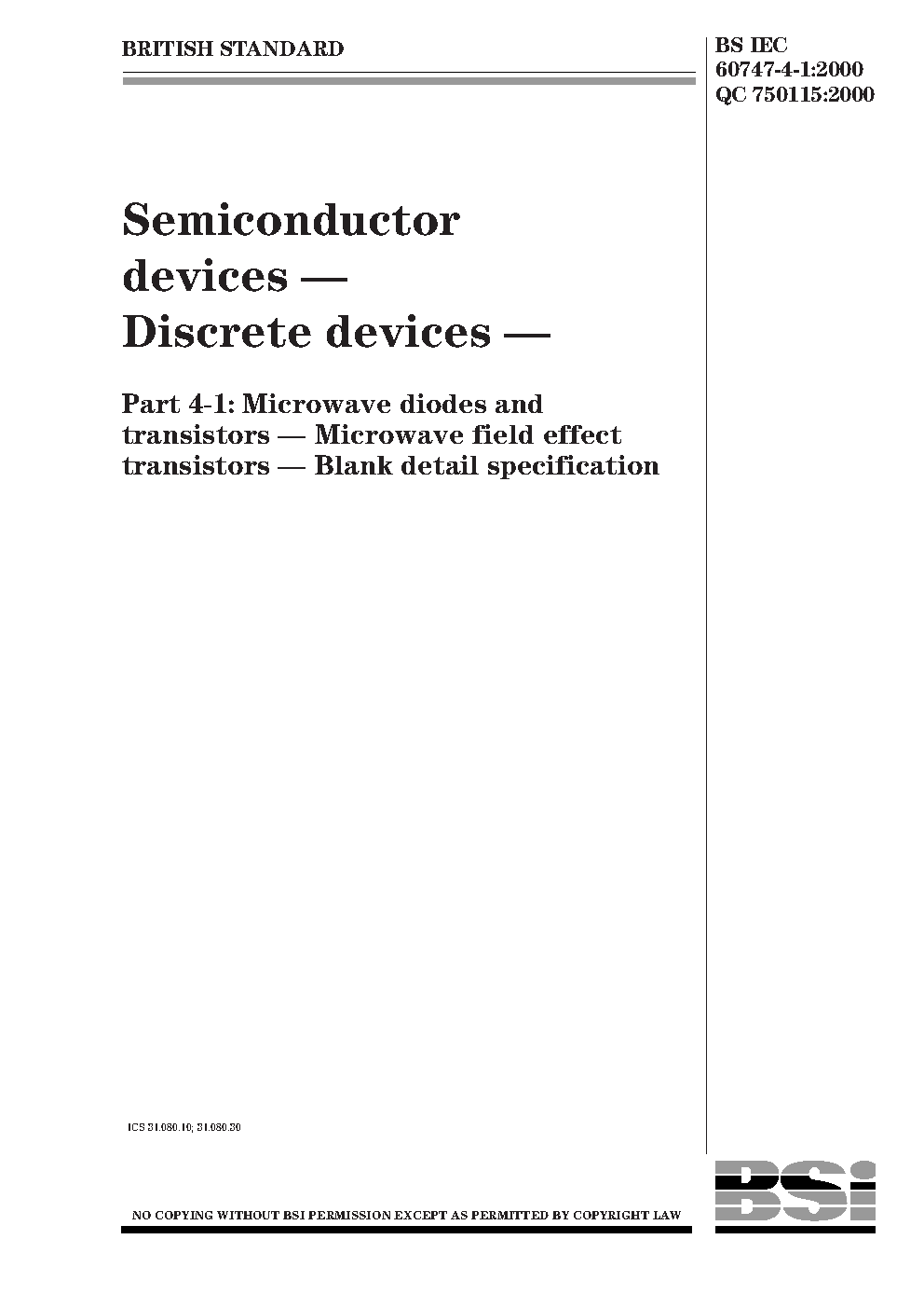Semiconductor devices. Discrete devices Microwave diodes and transistors. field effect Blank detail specification BDS for microwave field-effect transistors