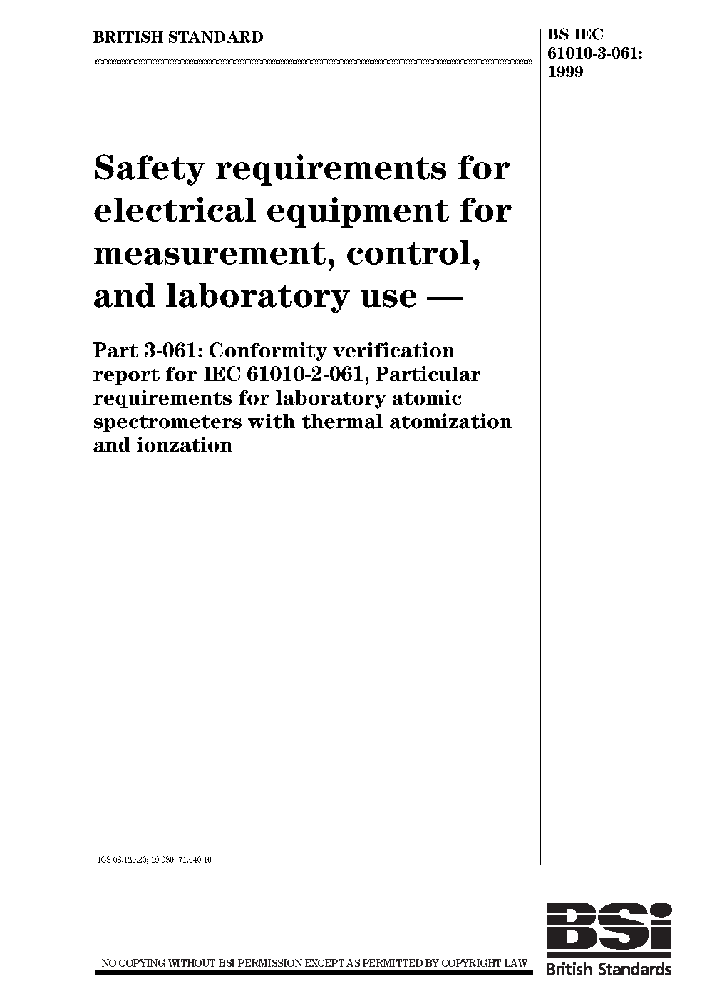 BS IEC 61010-3-061:1999