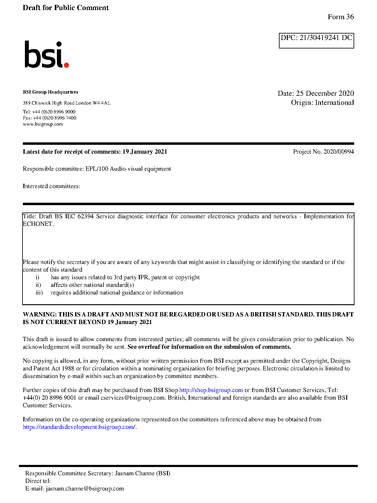 Service diagnostic interface for consumer electronics products and networks. Implementation for ECHONET