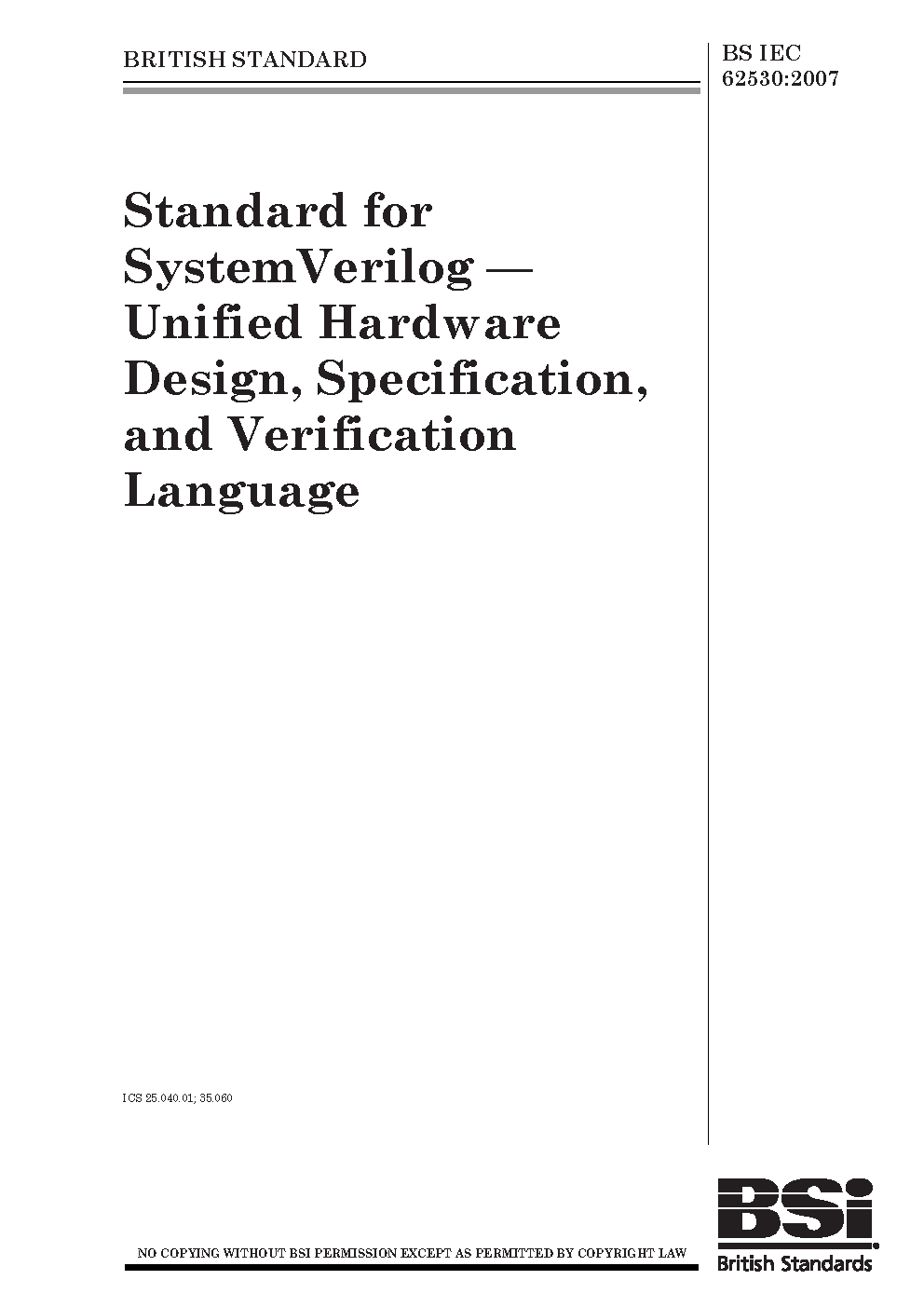 Standard for SystemVerilog. Unified hardware design, specification and verification language