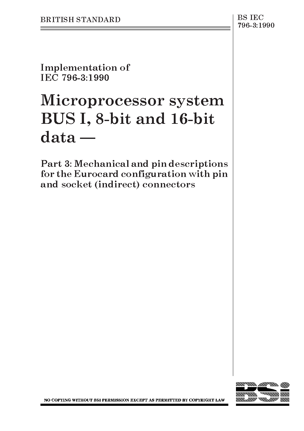 Microprocessor system bus. 8-bit and 16-bit data MULTIBUS I Mechanical pin descriptions for the Eurocard configuration with socket (indirect) connectors