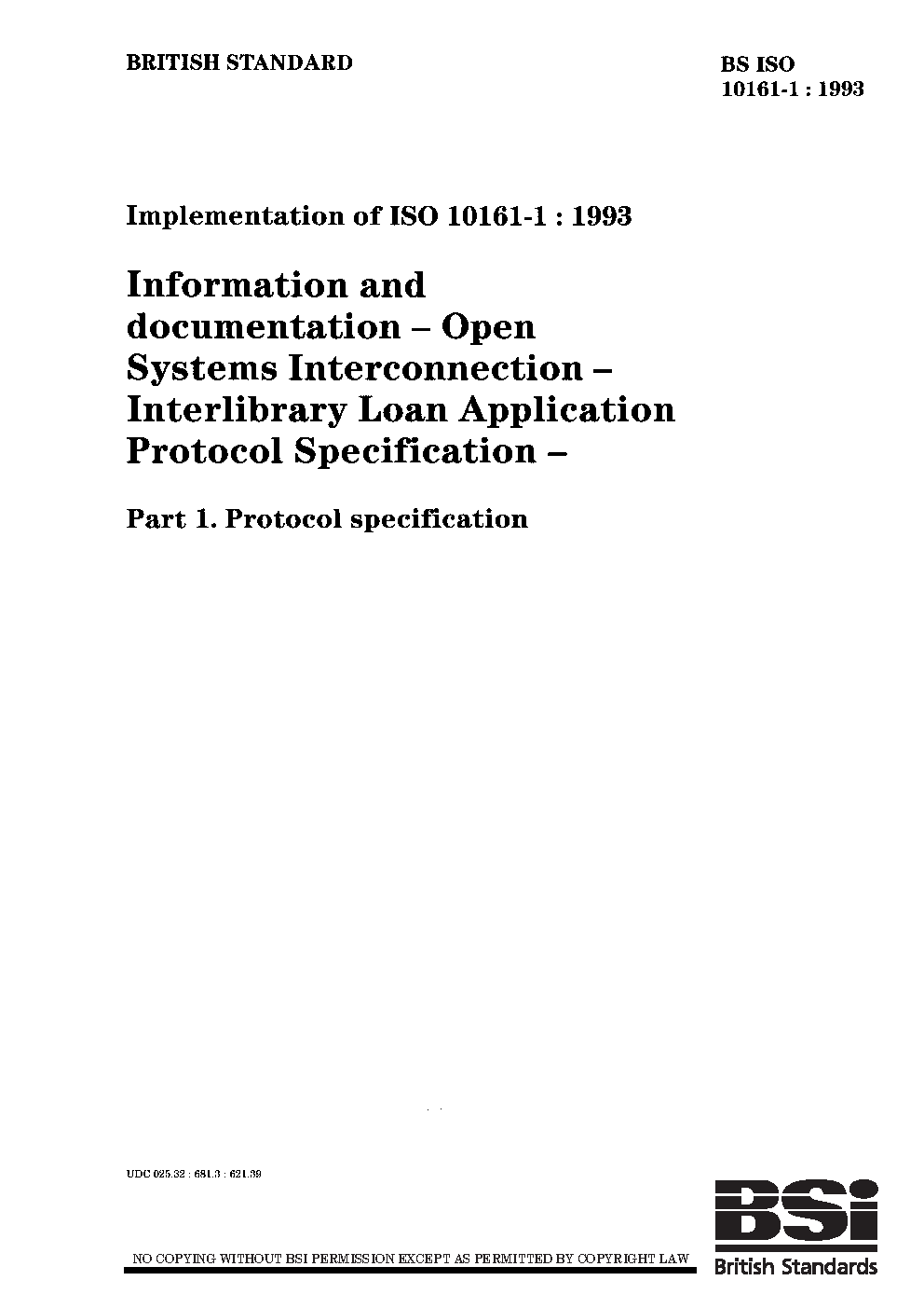 Information and documentation. Open systems interconnection. Interlibrary loan application protocol specification Protocol
