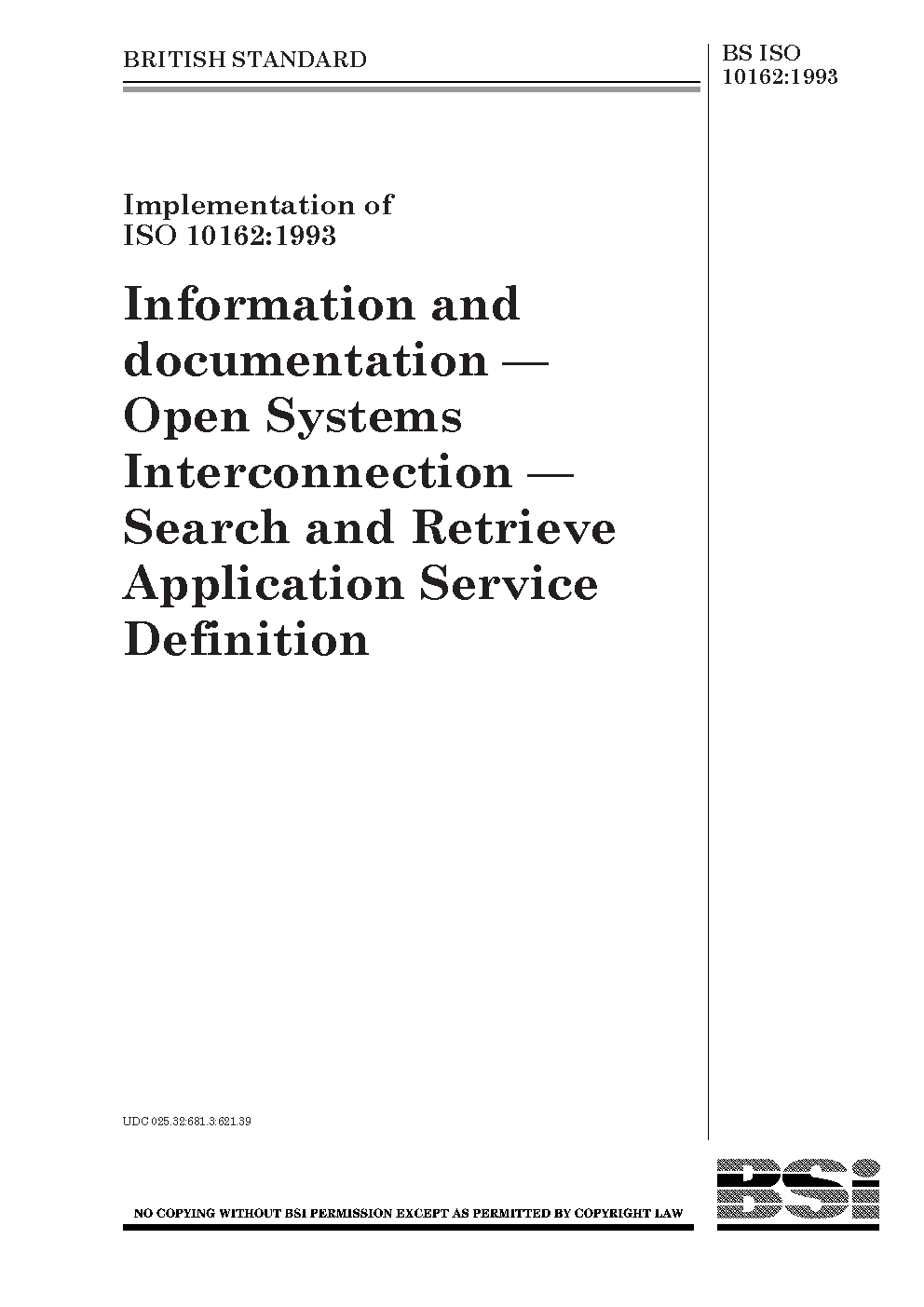 Information and documentation. Open systems interconnection. Search and retrieve application service definition