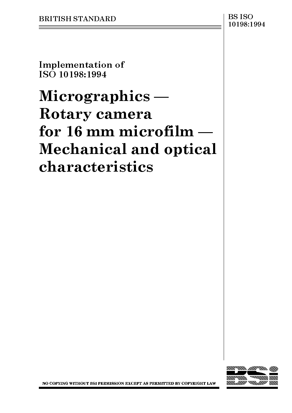 Micrographics. Rotary camera for 16 mm microfilm. Mechanical and optical characteristics