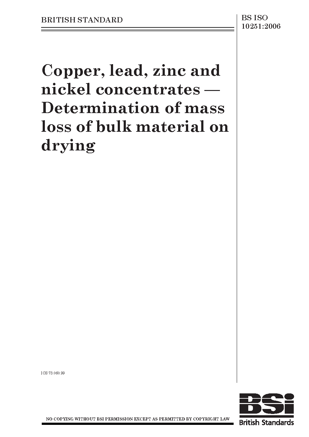 Dry weight determination;Drying;Metalliferous minerals;Bulk materials;Chemical analysis and testing;Moisture measurement;Concentrates;Zinc ores;Nickel ores;Gravimetric analysis;Lead ores;Copper ores