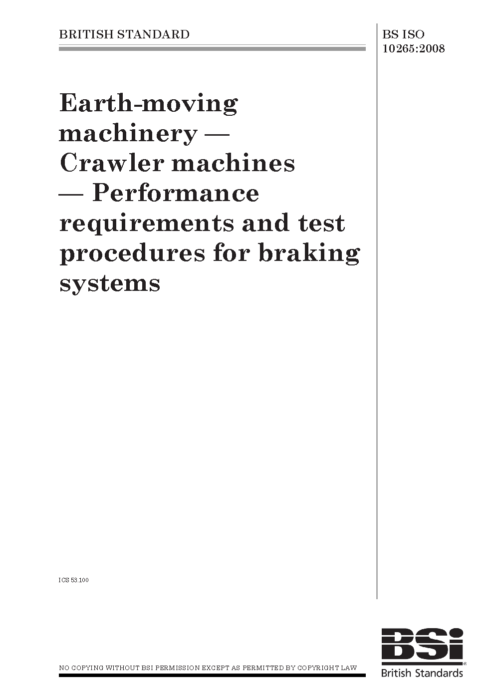 Earth-moving machinery. Crawler machines. Performance requirements and test procedures for braking systems